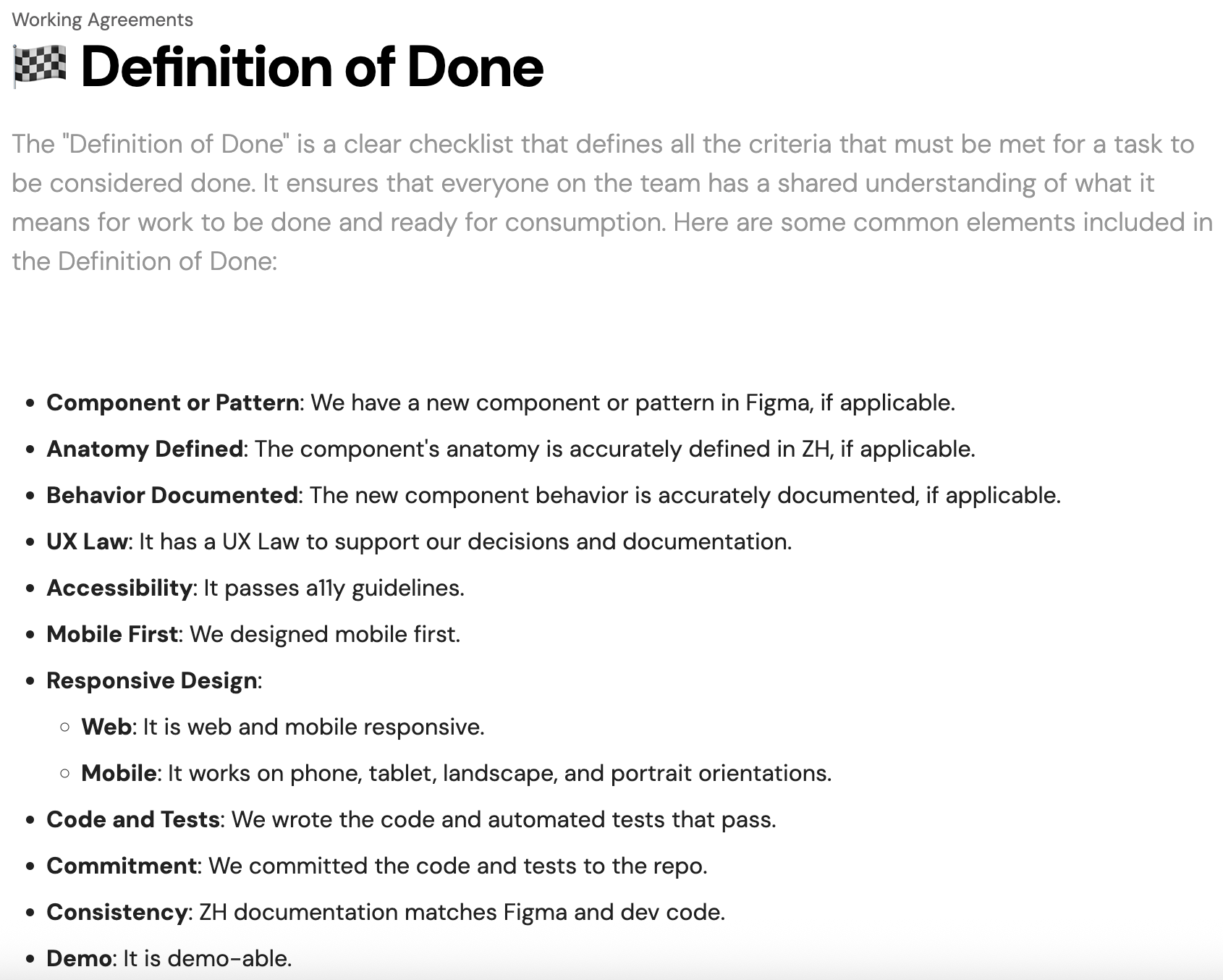 Open ↗Criteria that a product increment must meet for the team to consider it complete and ready for customers.